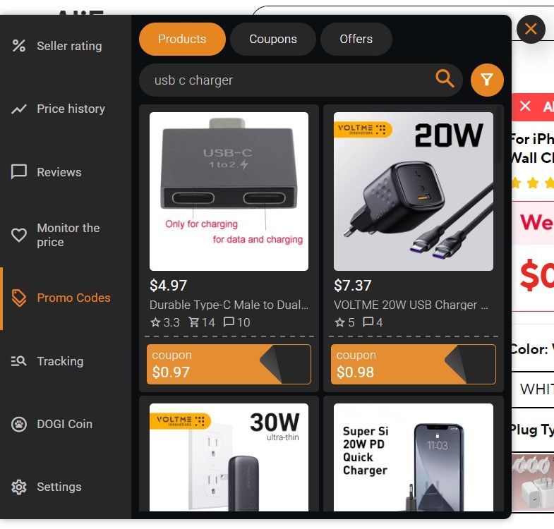 Search by keyword: Users can type in a product name, such as “usb c charger,” and AliHelper will find coupons and show products where those coupons can be used. This helps reduce guesswork and avoids trying multiple unrelated coupon pages.